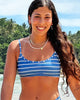 The ‘Freshwater’ design channels pure resort luxury with timeless blue-on-white stripes, bringing effortless seaside glamour to your swim outfit. Sophisticated, striking, and made to turn heads!