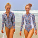 The UPF50+ women's swimwear looks after your skin, is fashionable & fun! Pair this full coverage upper torso swimsuit with a Loretta Beach Coverup.